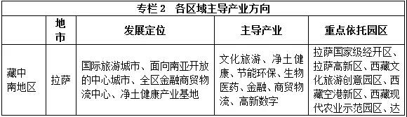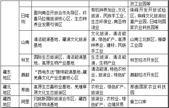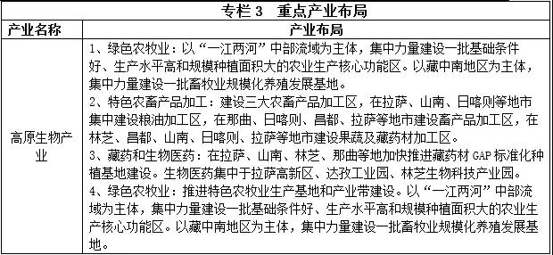 ——產(chǎn)業(yè)集聚度明顯提高,產(chǎn)業(yè)布局更加合理。各類產(chǎn)業(yè)園區(qū)、基地基礎(chǔ)設(shè)施建設(shè)日益完善,基本建成布局合理、功能齊全、經(jīng)濟(jì)繁榮的藏中南經(jīng)濟(jì)帶,藏東、藏北、藏西特色優(yōu)勢(shì)產(chǎn)業(yè)加快發(fā)展,高原特色農(nóng)產(chǎn)品基地、藏民族特色文化產(chǎn)業(yè)發(fā)展基地、開(kāi)發(fā)開(kāi)放實(shí)驗(yàn)區(qū)、經(jīng)濟(jì)合作區(qū)、綜合保稅區(qū)等產(chǎn)業(yè)集聚區(qū)等建設(shè)成效顯著。