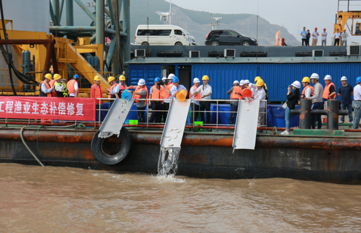 近日,國(guó)電電力舟山海上風(fēng)電開發(fā)有限公司在舟山市普陀區(qū)六橫島配套碼頭,舉辦保護(hù)海洋生活 推進(jìn)企業(yè)綠色發(fā)展增殖放流活動(dòng)。一桶桶魚苗被倒