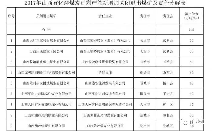 日前,山西省政府發(fā)布《關于分解下達2017年煤炭行業(yè)化解過剩產能新增加目標任務的通知》(下稱《通知》)提出,2017年山西省新增加退出煤炭產能525萬噸,關閉退出9座煤礦。