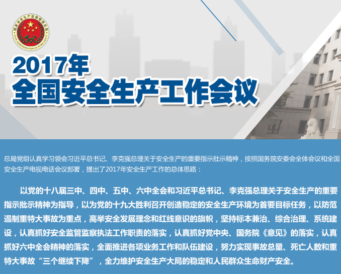 2017年全國(guó)安全生產(chǎn)會(huì)議今天在京召開(kāi),國(guó)家安監(jiān)總局黨組書記、局長(zhǎng)王玉普在會(huì)上介紹,黨的十八大以來(lái)的五年,是安全生產(chǎn)工作務(wù)實(shí)推進(jìn)、成效