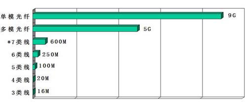 而光纜,哪怕是最普通的多模光纜所能夠提供的帶寬也是銅纜系統(tǒng)所望塵莫及的。見(jiàn)圖二: