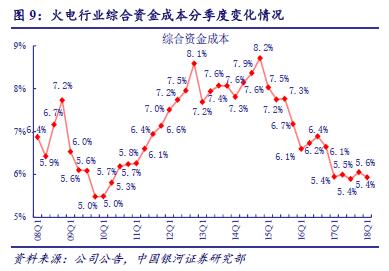 2017 年電力行業(yè)綜合資金成本保持相對穩(wěn)定。2017 年火電行業(yè)財務費用420.9 億元,同比增加11.74%;財務費用率6.4%,同比減少0.4 個百分點。2018 年一季度,火電財務費用113.1 億元,同比提升17.8%;財務費用率6.3%,同比保持不變,環(huán)比降低0.1 個百分點;綜合資金成本5.4%,同比繼續(xù)保持不變,環(huán)比下降0.2 個百分點。