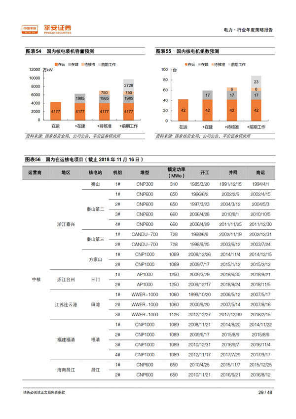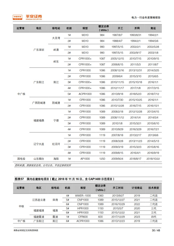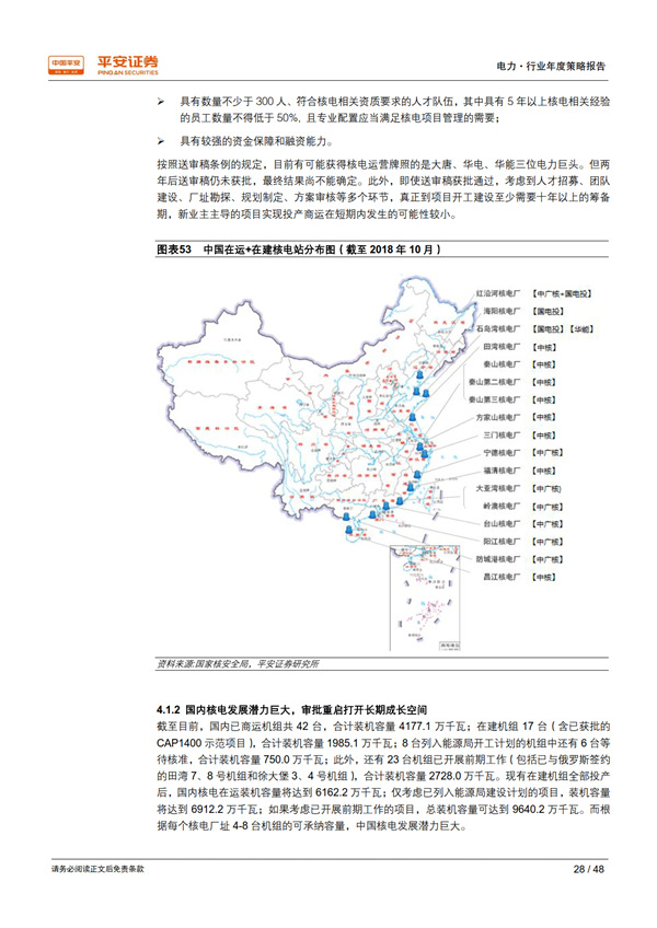 優(yōu)質(zhì)資產(chǎn)之核電:護城河寬廣,成長潛力巨大。 國內(nèi)具有核電運營牌照的只有中核、中廣核、國電投三家,其他電力運營商只能通過參股的方式參與核電站開發(fā)建設,競爭格局穩(wěn)定。 審批重啟打開了行業(yè)長期成長空間,考慮現(xiàn)有在建、已開展前期工作的規(guī)劃機組,以及每個核電廠址 4-8 臺機組的可承納容量,國內(nèi)核電發(fā)展?jié)摿薮蟆?/p>