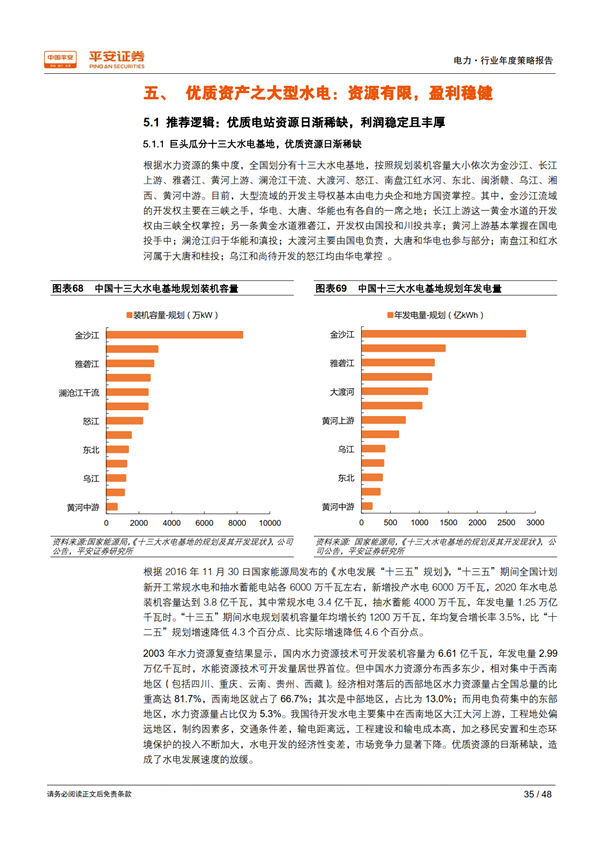 優(yōu)質(zhì)資產(chǎn)之大型水電:資源有限,盈利穩(wěn)健。 按照水力資源的集中度,全國劃分有十三大水電基地,其開發(fā)主導權(quán)基本由電力央企和地方國資掌控,待開發(fā)水電中的優(yōu)質(zhì)資源日漸稀缺。水電經(jīng)營業(yè)績的主要影響因素就是上游來水量的豐枯情況, 干流大型電站出力相對平滑可控,且成本主要為折舊和各項財政規(guī)費,利潤率優(yōu)于其他電源類型。 2019 年起,增值稅返還政策到期對大型水電利潤的負面影響將基本消失。