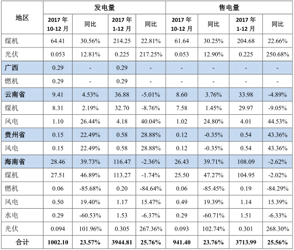注:標(biāo)記*的內(nèi)容為2016年底公司新收購(gòu)項(xiàng)目所涉及的區(qū)域公司或電廠,2017年1月1日并入公司財(cái)務(wù)報(bào)表,其同比數(shù)據(jù)僅供參考。