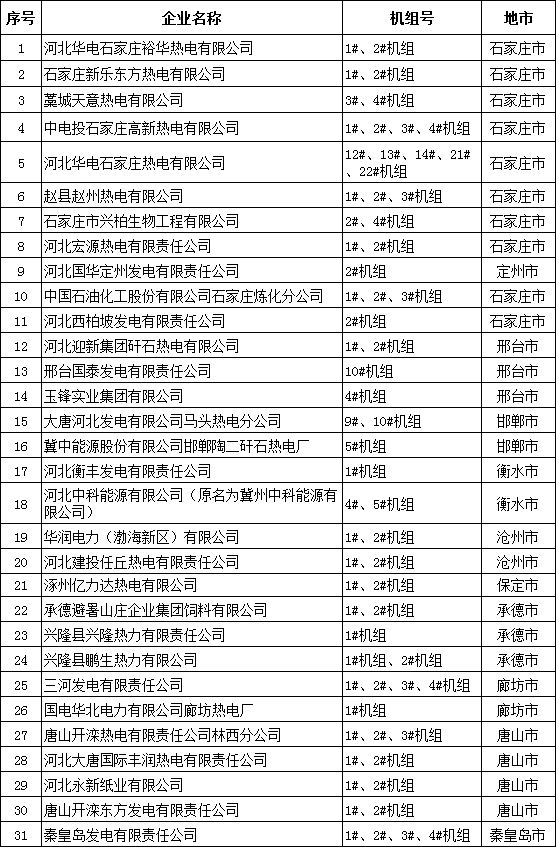 河北省公布2017年熱電聯(lián)產(chǎn)電廠(機(jī)組)認(rèn)定企業(yè)名單:31家企業(yè) 66臺(tái)機(jī)組