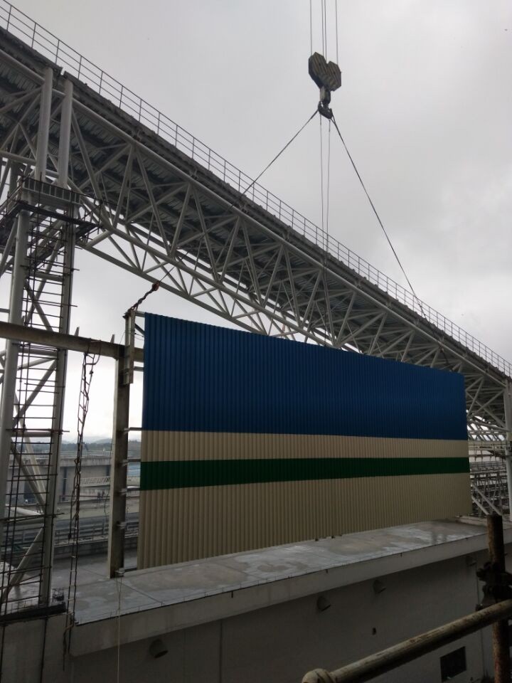 2017年10月22日,由中國(guó)能建安徽電建二公司承建的中電普安電廠2×660MW新建工程大屋頂順利開吊。該工程鍋爐大屋頂由55根支柱支撐于鍋爐爐頂鋼結(jié)構(gòu)上。支柱布置橫向7排,縱向5列。支支柱、水平支撐、檁條、墻