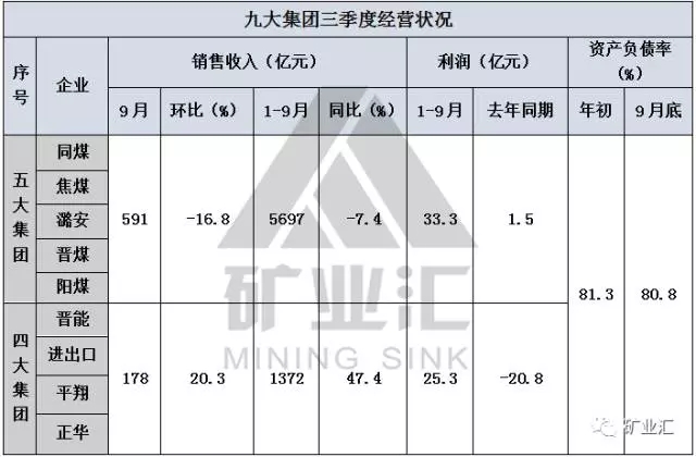 銷售收入方面,1-9月份五大集團(tuán)(同煤、焦煤、潞安、晉煤、陽(yáng)煤)累計(jì)雖然同比下降,但利潤(rùn)卻是去年同期利潤(rùn)的20多倍。