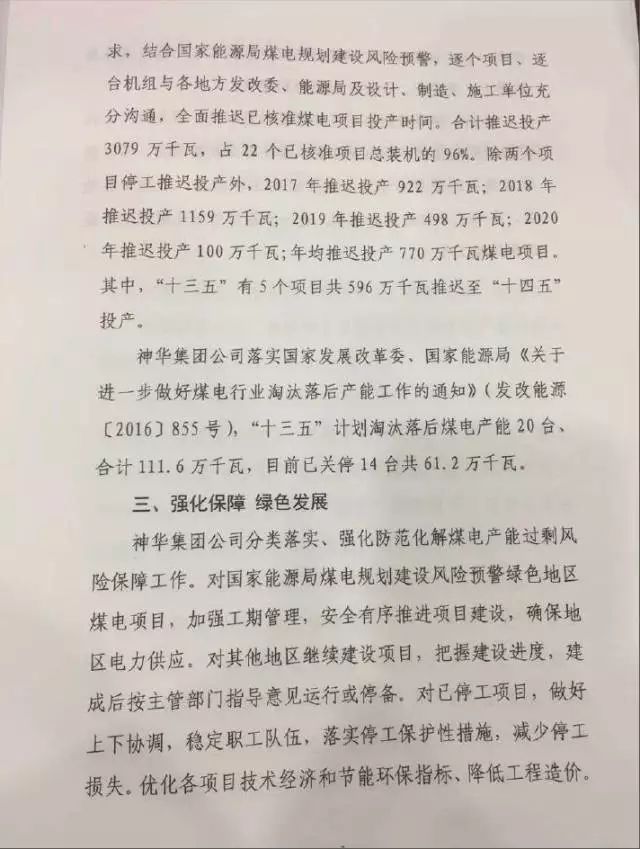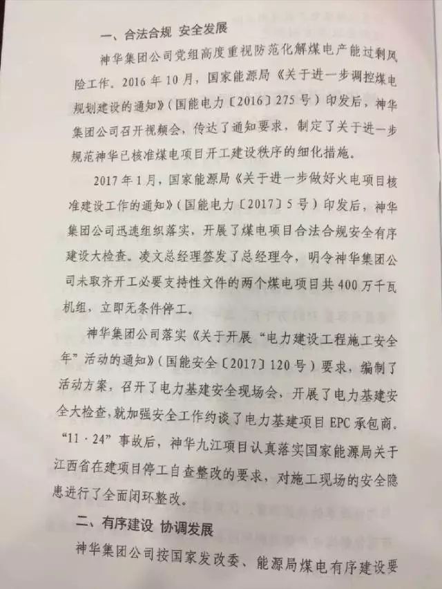 神華公司開展煤電項(xiàng)目合法合規(guī)安全有序建設(shè)大檢查。凌文總經(jīng)理簽發(fā)了總經(jīng)理令,明令神華集團(tuán)公司未取齊開工必要支持性文件的兩個(gè)煤電項(xiàng)目共400萬千瓦機(jī)組,立即無條件停工。