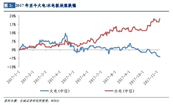 2017年年初至今,中信電力及公用事業(yè)指數(shù)(ci005004.wi)漲幅為1.43%,同期上證綜指漲幅為9.15%,滬深300指數(shù)漲幅為21.48%,跑輸大盤7.72%,跑輸滬深300指數(shù)為20.05%。其中火電指數(shù)跌幅為4.11%,水電指數(shù)漲幅為18.15%,