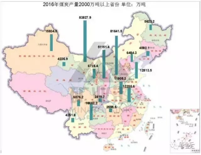 2016年我國煤炭產(chǎn)量為33.6億噸其中內(nèi)蒙、山西、陜西三省產(chǎn)煤21.66億噸,占全國總產(chǎn)量的63%;內(nèi)蒙、陜西、山西、黑龍江等北部省區(qū)共產(chǎn)煤247584.6萬噸,占全國的73%。
