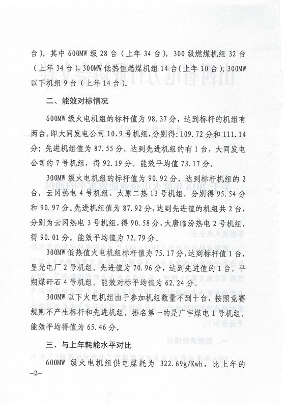 山西省發(fā)布2016年度火電企業(yè)能效水平的通報(bào)