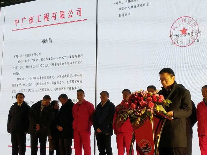 國(guó)家科技部項(xiàng)目主管陶強(qiáng)、國(guó)際核聚變實(shí)驗(yàn)堆組織(ITER Organization,以下簡(jiǎn)稱(chēng)“IO”)代表Sergay等出席了發(fā)運(yùn)儀式。陶強(qiáng)對(duì)聯(lián)合體項(xiàng)目團(tuán)隊(duì)的努力和協(xié)作給予了肯定,并表示希望聯(lián)合體團(tuán)隊(duì)可以在后續(xù)的國(guó)際市場(chǎng)開(kāi)拓中取得更多優(yōu)異的成績(jī)。