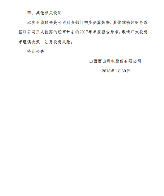 西山煤電:2017年凈利14.98億~17.15億元 預增長245%~295%