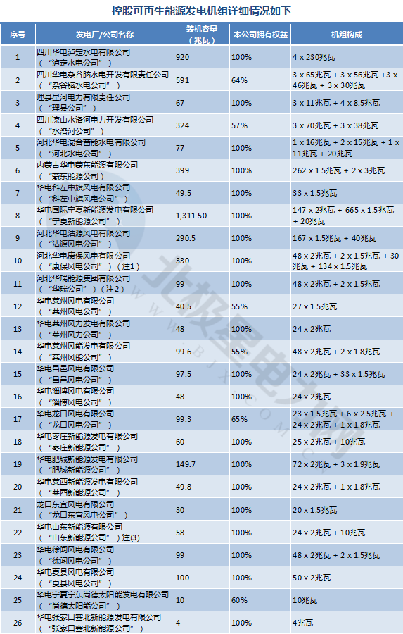 注2:華瑞公司的全資子公司——河北華電蔚州風(fēng)電有限公司的風(fēng)電裝機(jī)容量為99兆瓦。