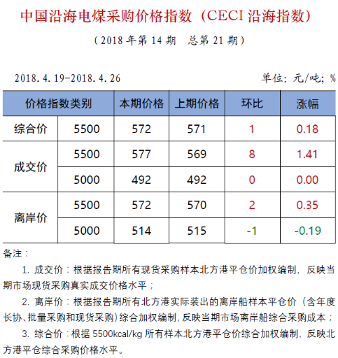 中國沿海電煤采購價格指數(shù)(CECI沿海指數(shù))第21期