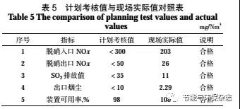 經(jīng)過(guò)168h連續(xù)運(yùn)行工藝標(biāo)定,低氮燃燒器運(yùn)行正常,并沒(méi)有出現(xiàn)影響鍋爐運(yùn)行的缺陷問(wèn)題并將氮氧化物控制在300mg/Nm3以內(nèi);脫硝反應(yīng)器入口溫度在320~420℃之間,在噴氨溫度條件范圍,根據(jù)出口氮氧化物的含量氨氣用量控制在了25~45kg/h之間,出口氮氧化物控制在50mg/Nm3,吸收塔進(jìn)口溫度在140~150℃之間,出口SO2排放值小于35mg/Nm3,出口煙塵在10mg/Nm3以內(nèi)(表5)。