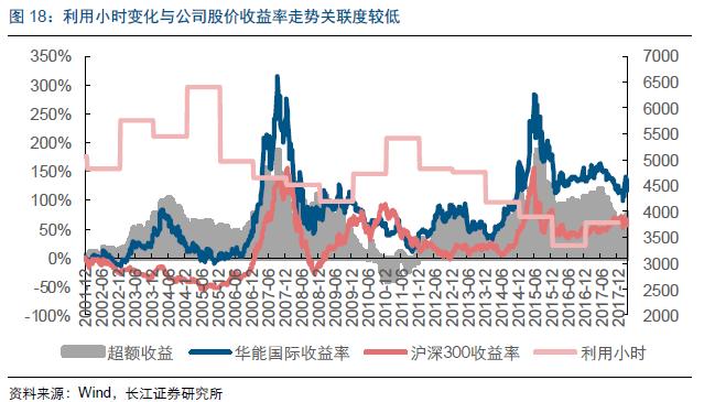 通過(guò)進(jìn)一步對(duì)比公司股價(jià)與火電行業(yè)指數(shù)的收益率,可以看到公司作為國(guó)內(nèi)毫無(wú)爭(zhēng)議的火電龍頭企業(yè),在不考慮分紅的情況下其行情波動(dòng)與行業(yè)整體走勢(shì)高度相關(guān)。從圖形中我們可以比較清晰地看到,以自上市以來(lái)的長(zhǎng)周期來(lái)看公司股價(jià)走勢(shì)基本與中信火電行業(yè)指數(shù)同時(shí)同向變動(dòng)。唯一的例外發(fā)生在公司剛上市不久的2003年至2014年上半年間,這段時(shí)間內(nèi)公司多次發(fā)生債轉(zhuǎn)股,一定程度上對(duì)于公司股價(jià)走勢(shì)產(chǎn)生影響。