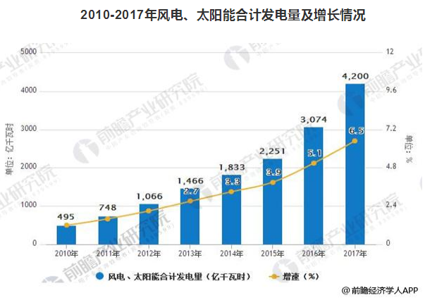 火電發(fā)電量在全口徑發(fā)電量中所占比重從2011年的82.5%持續(xù)下降到2017年的71.0%。其中,去年煤電發(fā)電量占比為64.7%。同期,新能源(并網(wǎng)風(fēng)電和太陽能)發(fā)電量同比增長36.6%,占總發(fā)電量的比重為6.5%。