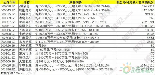 今年上半年 , 得益于發(fā)電量大幅提升 , 不少電企公告業(yè)績(jī)同比出現(xiàn)增長(zhǎng)。Wind數(shù)據(jù)顯示 , 中信火電行業(yè)37家企業(yè)中 , 已有16家發(fā)布2018年中期業(yè)績(jī)預(yù)告 , 其中10家業(yè)績(jī)同比增長(zhǎng) , 7家增幅超過100%。其中*ST新能增長(zhǎng)近700%,皖能電力450%。