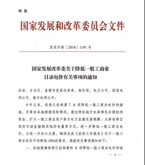 北極星電力網(wǎng)從能見App處獲悉,日前,國(guó)家發(fā)改委印發(fā)了特急文件《國(guó)家發(fā)展改革委關(guān)于降低一般工商業(yè)目錄電價(jià)有關(guān)事項(xiàng)的通知》,針對(duì)目前8項(xiàng)降電價(jià)措施實(shí)施后,尚未達(dá)到降一般工商業(yè)電價(jià)10%的地區(qū), 再部署3項(xiàng)措施,本次降電價(jià)措施主要資金來(lái)源依舊是電網(wǎng)公司收入(具體降價(jià)措施見文末文件)。