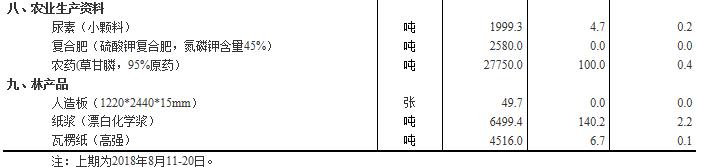 統(tǒng)計局:流通領域重要生產(chǎn)資料市場價格變動情況(2018年8月21-30日)