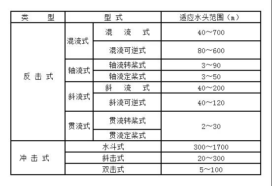 水輪機(jī)類型及應(yīng)用水頭范圍
