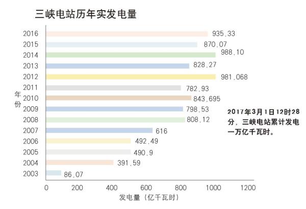 三峽投產(chǎn)正好趕上了我國(guó)經(jīng)濟(jì)的大發(fā)展時(shí)期,1992年人大通過(guò)興建三峽工程的議案,當(dāng)年全國(guó)發(fā)電量7470億千瓦小時(shí),到了2016年,我國(guó)用電量已達(dá)5.9萬(wàn)億千瓦時(shí)??煽俊⒘畠r(jià)、清潔和可再生的三峽電,也緩解了新世紀(jì)初我國(guó)電力一度緊張的局面。此外,三峽還促進(jìn)了我國(guó)特大型水輪發(fā)電機(jī)相關(guān)技術(shù)的消化和吸收,在建設(shè)三峽左岸電站時(shí),14臺(tái)機(jī)組由兩個(gè)國(guó)外聯(lián)合體中標(biāo),而到了三峽右岸電站,12臺(tái)機(jī)組中已有8臺(tái)是擁有完全自主知識(shí)產(chǎn)權(quán)的國(guó)產(chǎn)化機(jī)組。而正在建設(shè)中的金沙江白鶴灘水電站,所使用的16臺(tái)世界最大的百萬(wàn)千瓦級(jí)機(jī)組,全都是國(guó)產(chǎn)的。