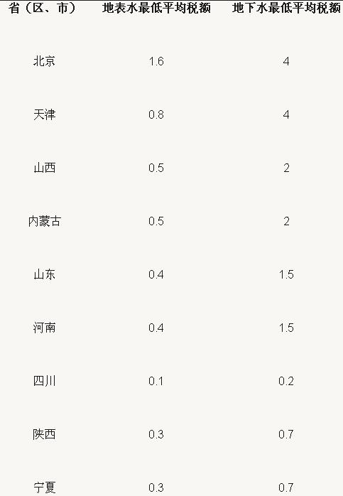 試點(diǎn)省份水資源稅最低平均稅額表