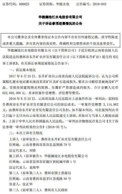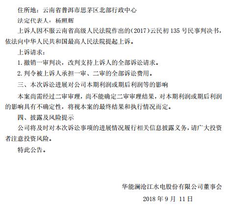 華能水電日前發(fā)布公告:華能瀾滄江水電股份有限公司關(guān)于訴訟事項進(jìn)展情況的公告。公告原文: