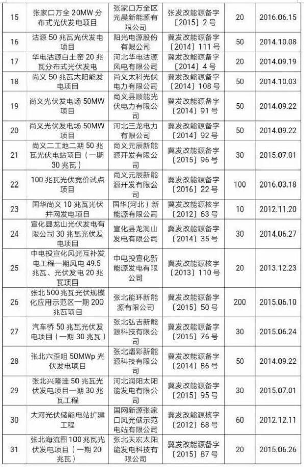 按照河北省能源局《關(guān)于一次性報(bào)送光伏發(fā)電項(xiàng)目備案證過(guò)期影響土地、環(huán)評(píng)、發(fā)電許可等手續(xù)辦理出具意見(jiàn)請(qǐng)示的通知》要求,各地級(jí)市共上報(bào)了99個(gè)符合要求的項(xiàng)目。河北省發(fā)改委要求各市能源局協(xié)調(diào)有關(guān)部門(mén)按照備案