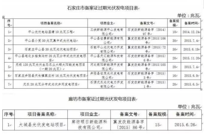 99個!河北省備案證過期光伏發(fā)電項目匯總