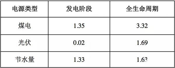 煤炭的開(kāi)采、洗選和發(fā)電環(huán)節(jié)都高度耗水,過(guò)度取水給當(dāng)?shù)氐纳鷳B(tài)環(huán)境和人體健康造成了巨大的危害。與煤炭相比,光伏發(fā)電不僅在污染物減排方面具有優(yōu)勢(shì),其用水量也遠(yuǎn)遠(yuǎn)小于燃煤發(fā)電。光伏和煤電發(fā)電階段與全生命周期的耗水量如下表所示。