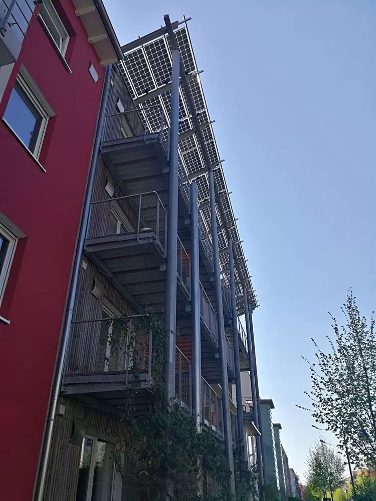 二樓的光伏板。光伏與陽臺護欄整合在一起。