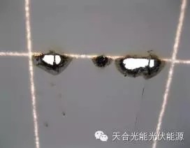 圖10為焊接不良問題導致的熱斑灼傷,背板燒穿,原因源于組件工藝問題。那么在焊接時,就要在工藝上嚴格控制起焊點,避免起焊點V型隱裂。在串焊接時,也同樣要控制起焊點,避免重壓及溫度過高產(chǎn)生V型隱裂。圖12可能為組件生產(chǎn)時混入一串低效電池片導致。圖14為二極管發(fā)熱,可能為二極管的質量問題或者連接松動。