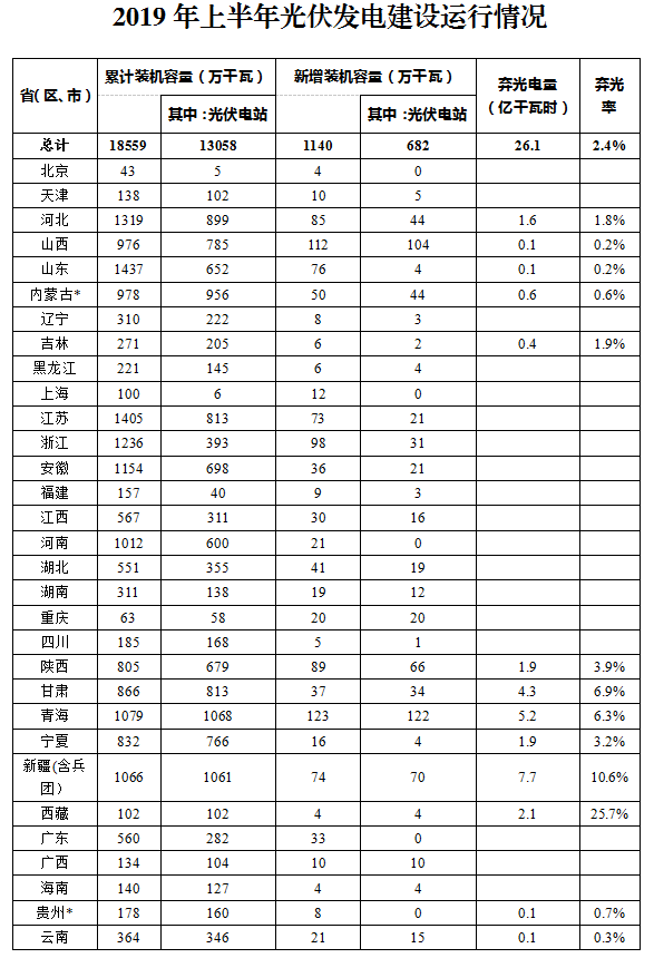 全國各?。▍^(qū)、市)2019年上半年光伏發(fā)電建設(shè)運(yùn)行情況詳見附表。