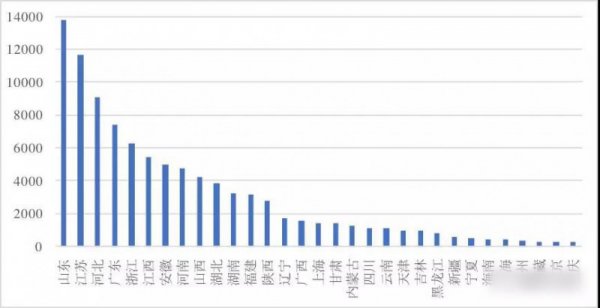 山東、江蘇、河北三省的小型光伏企業(yè)(側(cè)面反映戶(hù)用光伏系統(tǒng)經(jīng)銷(xiāo)商數(shù)量)居全國(guó)前三位,應(yīng)該是2018年戶(hù)用市場(chǎng)最活躍的省份。