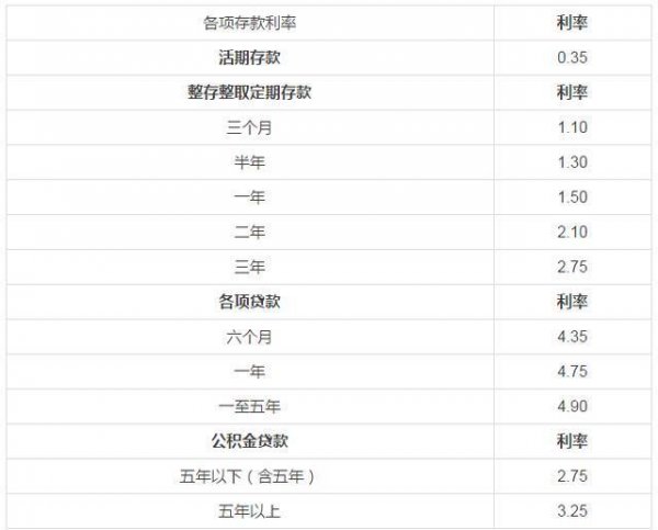 2018年最新銀行存貸款基準(zhǔn)利率表