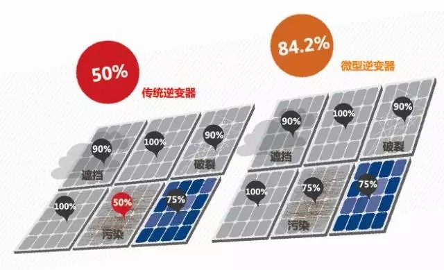 從系統(tǒng)本身考慮,多路MPPT的實(shí)現(xiàn)將可降低陰影遮擋的影響。例如,微型逆變器光伏系統(tǒng)為全并聯(lián)設(shè)計(jì)電路,每塊組件都具有獨(dú)立MPPT,可以實(shí)現(xiàn)最大功率輸出,使得陰影、灰塵、樹葉對(duì)電池板的部分遮擋,不再有短板效應(yīng),消除了組件遮擋、朝向和角度不同而造成的失配問題,大大提高了發(fā)電量。