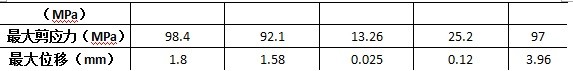 其次對(duì)整體系統(tǒng)進(jìn)行受力分析,主要分析其最大應(yīng)力,最大剪應(yīng)力以及最大變形量,并與采用型材的相應(yīng)的許用應(yīng)力進(jìn)行對(duì)比,最終可以得到整體系統(tǒng)滿足強(qiáng)度和剛度要求。