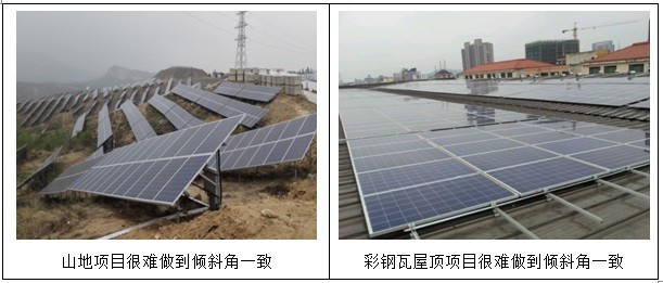 導(dǎo)致光伏組串并聯(lián)失配的因素很多,如陰影遮擋、組件出廠產(chǎn)品的不一致性和衰減的不一致性、光伏電池組件由于受地形所限導(dǎo)致的傾斜角不一致、光伏電站大區(qū)域內(nèi)溫度和光照不一致等等。如果采用一個(gè)MW方陣只有一個(gè)MPPT跟蹤的話,則并聯(lián)失配影響會非常大。如果說陰影遮擋、溫度/光照不一致、組件性能不一致等都是概率性因素,那在山地等復(fù)雜地形,光伏電池板安裝的傾斜角不一致導(dǎo)致的并聯(lián)損失基本上是確定性的因素了。