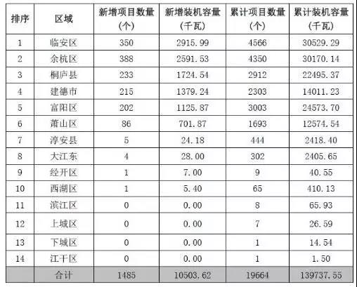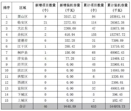 (1)裝機容量以蕭山區(qū)、臨安區(qū)和大江東三地為主力。