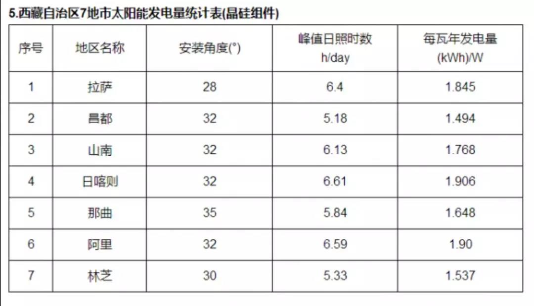 附:全國地面光伏電站最佳安裝角度及發(fā)電量速查表