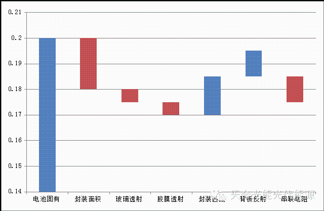 這樣算下來,20%的光伏電池到這兒為止,大概光伏組件的效率就剩17.5%了。要增加光伏組件的電能輸出,就應(yīng)該減少封裝損失,增加封裝增益。換句話說,只要我們把以上幾個(gè)環(huán)節(jié)做好,該減少的減少,能提升的提升,光伏組件的效率就能達(dá)到17.5%以上。