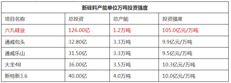 六九硅業(yè)是拖垮英利太陽(yáng)能的重要敗筆,在行業(yè)狂熱頂峰期英利大手筆負(fù)債布局硅料業(yè)務(wù),在2010年的可行性報(bào)告中,總產(chǎn)能區(qū)區(qū)1.2萬(wàn)噸的六九硅業(yè)廠的總的資本支出高達(dá)126億元。彼時(shí)大家硅料生產(chǎn)成本多在30美金/kg的水準(zhǔn),而硅料售價(jià)卻高達(dá)100~150美金。