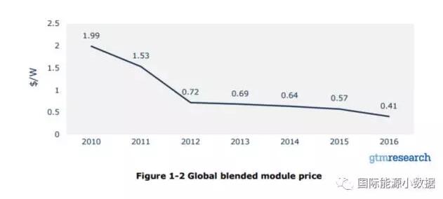 原標題:【數(shù)據(jù)】2010-2016:光伏組件平均成本從1.99美元/瓦降至0.41美元/瓦