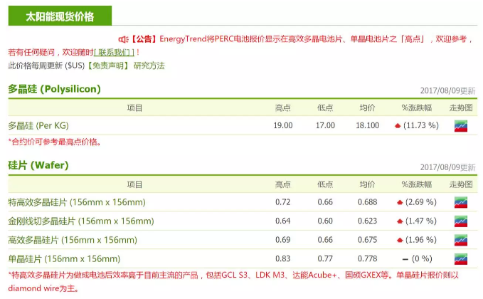 組件端在中國(guó)本土需求并不急迫的狀況下,價(jià)格持穩(wěn)較為吃力;反觀美國(guó)即將進(jìn)入需求高峰期,非中國(guó)組件價(jià)格仍有向上走高的空間。由于201案將在9月22日宣布ITC的初步調(diào)查結(jié)果,市場(chǎng)一般認(rèn)定需要在此前將組件進(jìn)關(guān)以規(guī)避可能的風(fēng)險(xiǎn),算入海運(yùn)時(shí)間的話8月底會(huì)是最晚期限,預(yù)期終端價(jià)格可以因此加溫,并拉動(dòng)中國(guó)一線組件廠的產(chǎn)能利用率。