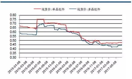 去年底發(fā)改委下達(dá)了《國(guó)家發(fā)展改革委關(guān)于調(diào)整光伏發(fā)電陸上風(fēng)電標(biāo)桿上網(wǎng)電價(jià)的通知》,在今年6月30日之后,將I至III類(lèi)資源區(qū)新建光伏電站的標(biāo)桿上網(wǎng)電價(jià)分別調(diào)整為每千瓦時(shí)0.65元、0.75元、0.85元,比2016年電價(jià)每千瓦時(shí)下調(diào)0.15元、0.13元、0.13元。此前市場(chǎng)普遍認(rèn)為,6.30之前的搶裝將透支三季度的裝機(jī)需求,光伏產(chǎn)業(yè)鏈的價(jià)格或?qū)⒏ツ耆径纫粯映霈F(xiàn)深度調(diào)整,但今年觀測(cè)到價(jià)格信號(hào)有所不同。