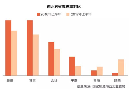 棄光率:西北地區(qū)情況好轉(zhuǎn)明顯。在有關(guān)部門對棄光地區(qū)裝機規(guī)模的嚴(yán)格控制,以及電網(wǎng)公司的積極推動之下,與2016年相比,中國三北地區(qū)的棄光情況已有所改善。數(shù)據(jù)顯示,西北五省的棄光率同比下降4.2個百分點,其中新疆、甘肅、寧夏等地的情況都有明顯好轉(zhuǎn)。值得注意的是,盡管國家電網(wǎng)公司對各個省公司已經(jīng)下達(dá)了硬性的新能源消納指標(biāo),并將其納入了績效考核,但除了國家電網(wǎng)之外,目前中國還存在著不少當(dāng)?shù)氐碾娋W(wǎng)企業(yè),由于這些企業(yè)由地方政府管理,因此并不受相關(guān)的績效考核約束。以陜西省為例,該省可再生能源消納比例位居全國倒數(shù)第一,盡管西北電網(wǎng)架結(jié)構(gòu)相對較好,但由于該省下屬的陜西地電對地方煤電有保護傾向,結(jié)果直接導(dǎo)致陜西省的棄光率從2016年的1.7%直接上升到2017年上半年的9.7%。