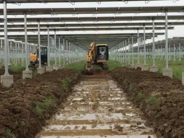 該項(xiàng)目中信博跟蹤系統(tǒng)采用桁架加拉筋的結(jié)構(gòu),具有立柱數(shù)量少、安裝方便快捷、現(xiàn)場不需要大型機(jī)械設(shè)備的特點(diǎn),系統(tǒng)整體形成一個(gè)網(wǎng)狀的穩(wěn)定結(jié)構(gòu),組件連接具有整體性,絕不會(huì)出現(xiàn)組件脫落現(xiàn)象,實(shí)現(xiàn)農(nóng)業(yè)與光伏完美結(jié)合。